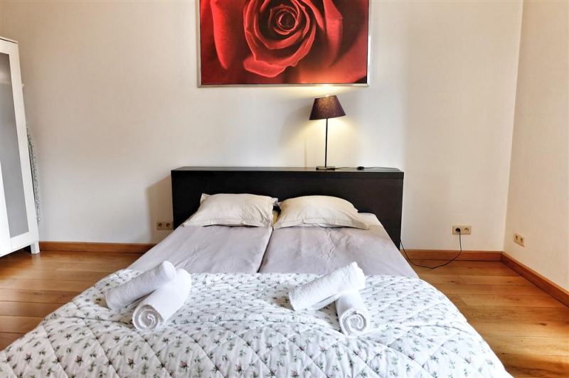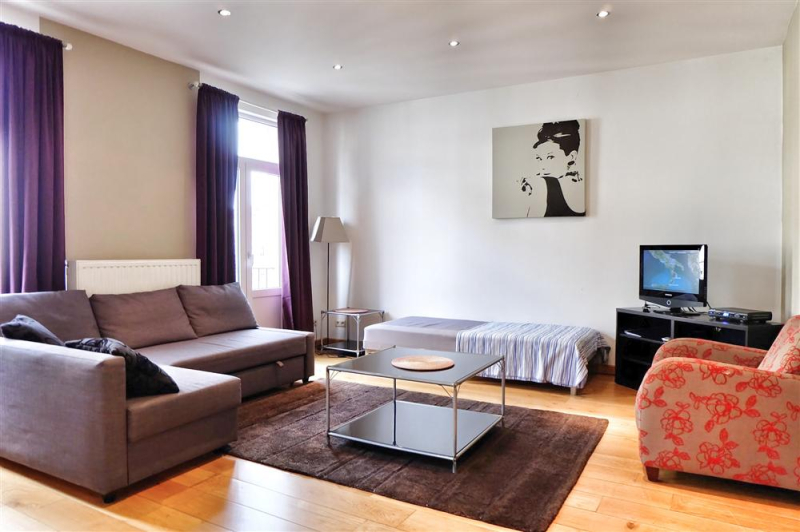 This charming 55sqm apartment located in the heart of Brussels consists of a bedroom, bathroom, WC, fully equipped kitchen and a lovely living room. It is perfect for 4 guests. Bedding: 1 dbl bed (bedroom), 1 single bed (living room), 1 double sofa bed (living room) Free Wi-Fi access is also provided. IMPORTANT NOTE: Check-in office: Rue Grétry 23, open Monday-Friday: 10-22, Saturday 10-18, Sunday and national holidays-closed. For arrivals outside these hours, or on national holidays, please call us in advance to schedule a meeting. City tax of EUR 4,59/day/apartment will be collected from you at check-in separately, and we will transfer it to the city jurisdiction. Late check-in fee of 30 € is charged for arrivals after 22 hrs