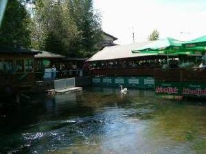 In restaurant and on terrace over the river, guests can enjoy in roast lamb, roast beef, fresh trout, sea speciallities, barbequed meals, meals a la carte, and wide assortment of high quality winea, alcoholic drinks, beersand and refreshing soft drinks.