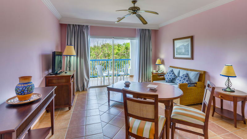 Las habitaciones están equipadas con: secador de pelo, enchufes de 220V, teléfono, aire acondicionado central, minibar, cafetera, TV vía satélite, caja fuerte electrónica, plancha y tabla de planchar, así como balcón o terraza. Se clasifican en Junior Suites ubicadas en medio de un exclusivo entorno natural idílico, Junior Suites con vistas al mar, ideales para familias y contetrraza o balcón, y las Suites ideales para grupos familiartes grandes o parejas que buscan una experiéncia de vacaciones mucha más espaciosa, con impresionantes paisajes a los jardines, o una inolvidable vista al mar y la playa.