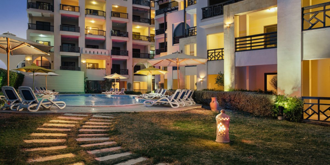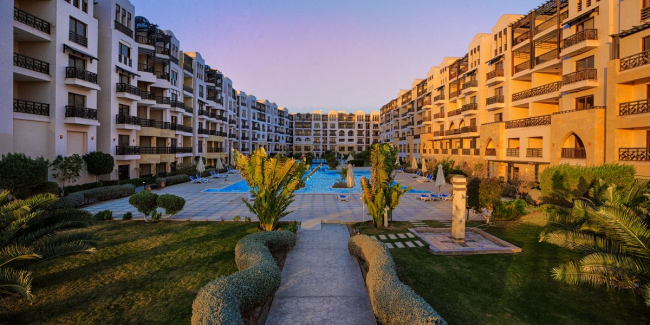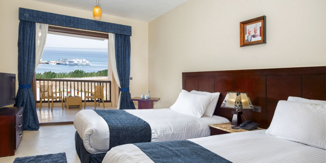 The Hotel is located directly on the beach, in the city center of Hughada Promenade, Hilton Square. It is 5 minutes from Hurghada airport The low density front line resort combines a private beach, luxury facilities and borders the famous promenade with its world renowned restaurants, bars, cafeterias, clubs and shopping centers to meander through.