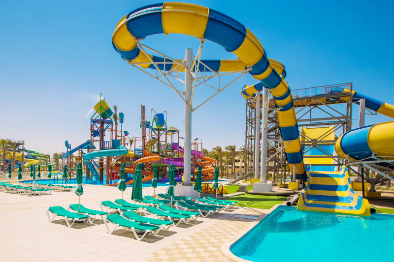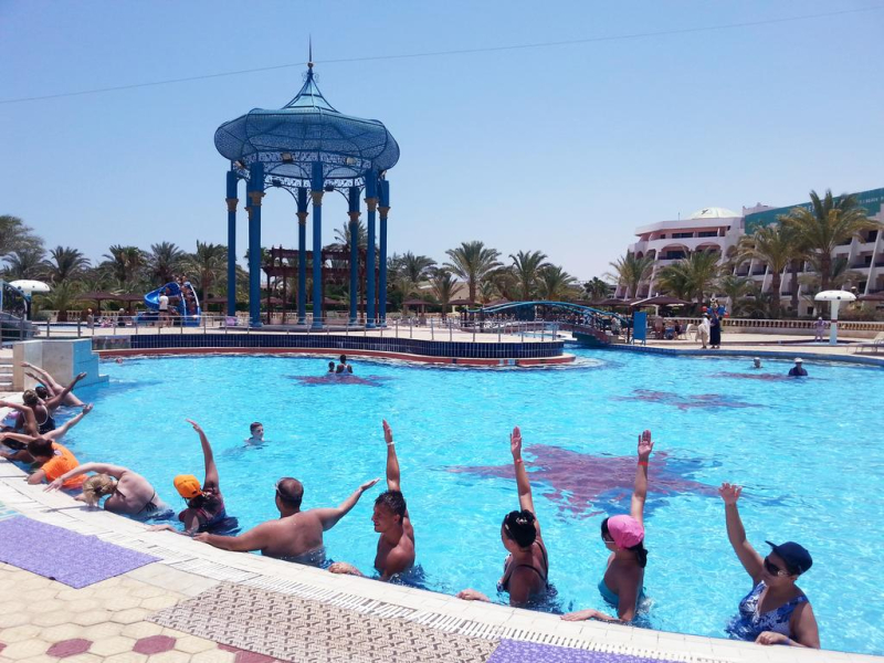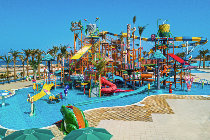 A five stars resort with 526 rooms with different categories, with 40% of the rooms with pool & sea view, is situated in hurghada at a carefully selected spot. The crystal clear water of the Red Sea, crowned with the unique golden beach is a paradise for you to enjoy. only 10 kilometres from hurghada International Airport. The Resort is all-inclusive property offering ALL IN COLLUSIVE accommodation. All local drinks (soft and alcoholic) are served . All rooms include air-conditioning, private balcony or terrace, TV or LCD, satellite TV channels, Telephone, private bathroom, Safe box & Mini Bar.