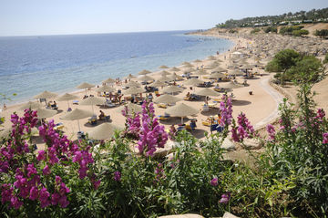 The 5-star Domina Harem is located on the Sheikh Coast Bay, 300 metres from a private sandy beach. Overlooking the reef and Tiran Island, it has 4 temperature-controlled pools and a diving centre. The Spices Restaurant offers breakfast featuring home-baked bread, Danish pastries and a buffet with a live cooking station. The hotel is 7 km from Sharm El Sheikh International Airport and 5 km from the center of Naama Bay. A minibus service operates for guests within the resort. The Oriental-style rooms include private balconies or terraces, most of which have sea views. All rooms are spacious and come with luxurious bathrooms, including a hot tub.