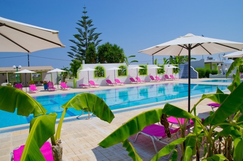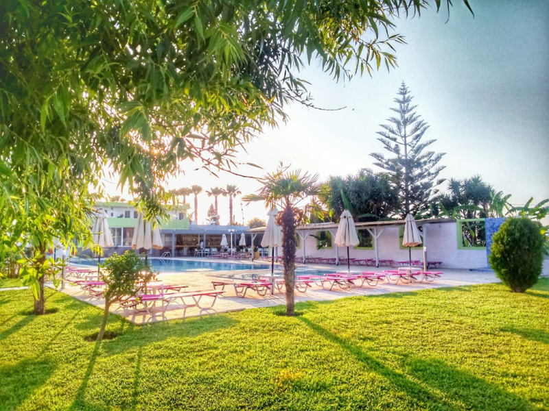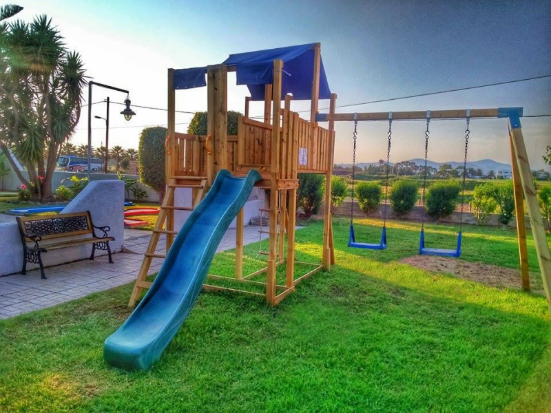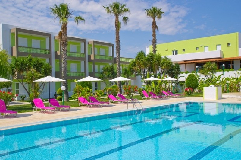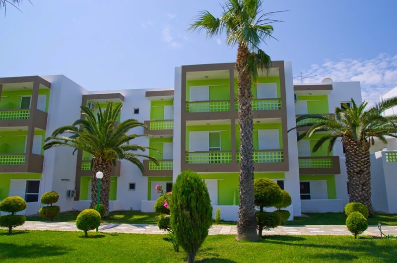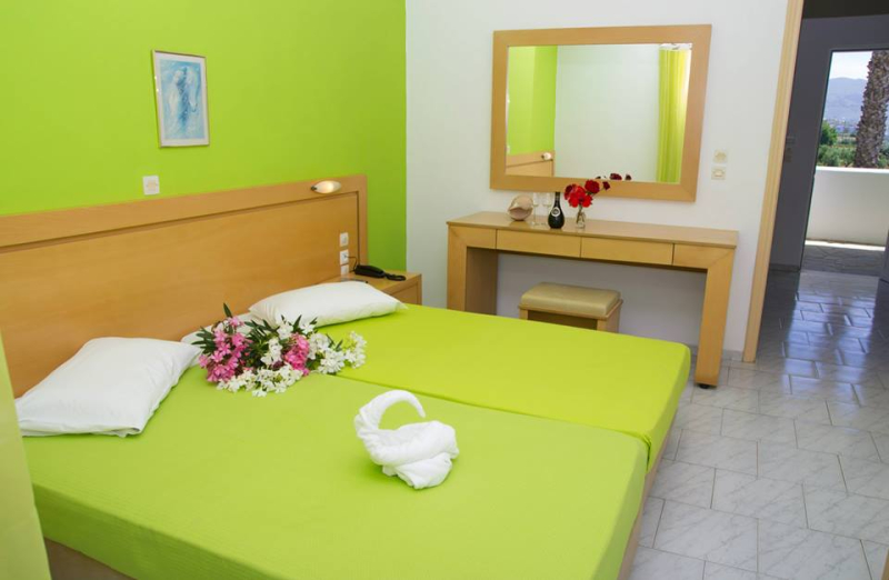 The hotel is located in the village of Marmari, on the island of Kos, 350 metres from the sandy beach. It is a quiet area ideal for relaxing. The centre of Marmari is around 1.5 km or 15 minutes' walk away from the hotel. Kos Town is 14 km from the hotel. Guests may also be interested in visiting Aslipeion, some 10 km away, the Plane Tree of Hippocrates and mediaeval castle, both of which are roughly 14 km away, or the thermal spring baths which are around 20 km from the property. Kos Airport is 20 km away. This is a modern establishment which offers a total of 60 studios and apartments. It is air-conditioned and the facilities include a lobby/reception area, bar and restaurant. There is also free wireless Internet access available. Other facilities include currency exchange facilities, a games room and children's playground. Guests can also take advantage of the laundry service, car park and bicycle hire service (for a fee). The apartments at the hotel are characterised by simple, modern décor and balconies. All feature a kitchenette with a fridge and offer amenities including satellite TV and a direct dial telephone. The en suite bathroom offers a shower, bath and hairdryer. The apartments offer individually regulated air conditioning. The hotel offers an outdoor swimming pool with a children's swimming area. There is a poolside snack bar, sun loungers and parasols, a sunbathing terrace and massage treatments (for a fee). Sun loungers and parasols are also provided on the nearby sandy beach. A continental breakfast buffet is served daily. Dinner is also offered as a buffet.
