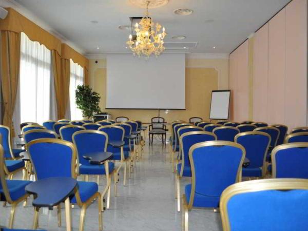 Position: The President Grand Hotel is a prestigious hotel lies in a strategic position along Olbia’s promenade, a few steps away from the main roads of historical and commercial centre. Rooms: The Standard Rooms have a window overlooking the neighbouring park of the historical “Dimora Tamponi” or views towards the town of Olbia. Restaurant: The restaurant of President Grand Hotelhas wide halls hosting guests in an elegant environment. It offers a service “à la carte” which proposes a refined gastronomic menu with dishes from the best Sardinian, National and International cookery tradition, more than a wide selection of the most famous Sardinian wines. More Informations: The President Grand Hotel makes available to its guests a reserved room and a PC post for people who don’t have their own one with them. Free Wi-Fi access is ensured both in common areas and in all rooms. From the last floor of President Grand Hotel, called the “Panoramic Roof”, you can enjoy a wonderful panoramic view on Olbia’s Gulf, comfortably lying in the deckchairs available in spring and summer or in front of an excellent drink. Remarks: Rates do not include any local tax that have to be paid directly to the hotel in addition to the total cost.