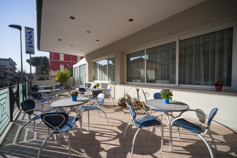 Hotel Jana is located in Marina Centro, in the animated heart of Rimini. Here you will find an elegant, modern environment where professionalism and efficency meld with cordiality and courtesy to make you feel right at home wether you are on holiday or at work. Located in a peaceful position, approximately 100m from the sea, the hotel has modernly furnished, restaurant, bar, TV room, wi-fi in public areas and tool parking. It answers the needs of even our most demanding guests who are always attentive to detail and on the look out for special places that offer excellent value for money. Short distance from the sea, from the hotel it is extremely easy to make excursions to the nearby cities reknowned for their art and the tourist centres. Even closer to the hotel, you will find the fabulous game park Fiabilandia, the Terme of Rimini and Riccione, the extraordinary little-Italy, the dolphins of Rimini and Riccione, and the parks Acquafan and Mirabilandia.