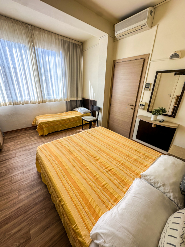 Parador Hotel Residence welcomes you to Cesenatico for a relaxing holiday just steps from the sea. Our bright, comfortable rooms come with a balcony, air conditioning, Wi-Fi, TV, safe, and private bathroom. We also offer connecting rooms for families and apartments (for 2 to 6 guests) with kitchenettes and private entrances. Start your day with our free breakfast buffet, then head to one of our partner beach clubs, where you can relax under the sun and enjoy lunch right by the sea. Back at the hotel, unwind by the pool with an aperitif, followed by dinner at our restaurant with the half-board option. We offer bike rental, discounted tickets to amusement parks, parking, airport shuttle, concierge service, and we’re pet-friendly. At Parador, everyone is welcome!