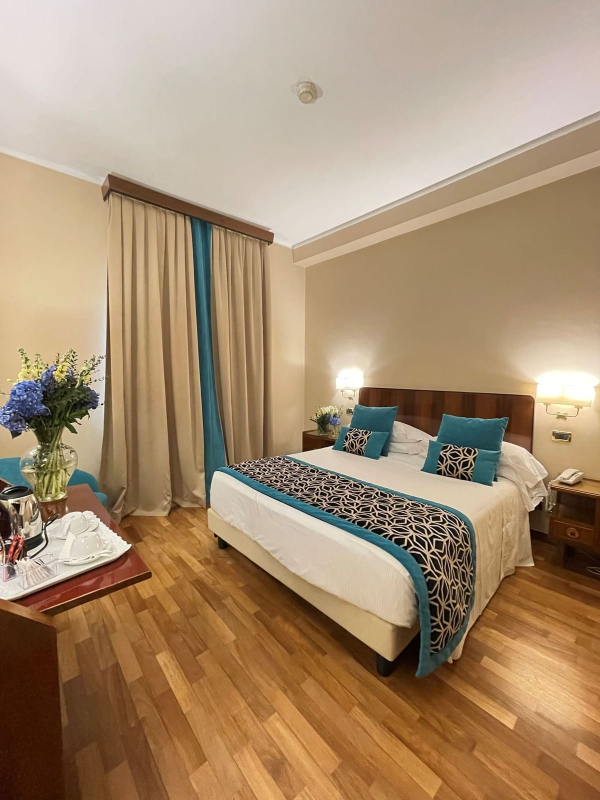 This sophisticated hotel is perched on Esquiline Hill and features stunning views over the historic city of Rome. Just a few steps from Termini railway station, this elegant establishment is a perfect point of departure for business and leisure travellers alike. Within a short walk visitors may reach the most emblematic city sights such as the Trevi Fountain, the Colosseum, Opera House, the Roman National Museum, the Basilica of Saint Mary Major and the bustling shopping area of Via Veneto. The hotel takes pride of a delightful Art Deco décor blending with sea theme present in public areas. Guests may completely wind down in sumptuously appointed rooms. The units feature neo-classical furniture, luxurious fabrics and cutting-edge amenities. Each of unique dining venues delivers exceptional cuisine and guests may revel in refined Italian and international dishes, which might be followed by a drink from the rooftop bar, offering breath-taking views of the Eternal City. Recently new 70 Premium Rooms completely restored are now part of this iconic hotel.