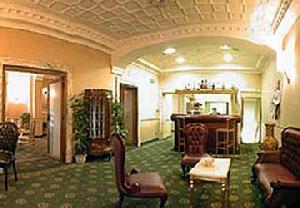 Built in 1910, the hotel offers a total of 71 rooms, spread over 5 floors. It offers guests an welcoming foyer with a 24 hour reception and a safe, a currency exchange, luggage storage and lifts as well as a café and a bar. In addition, the air-conditioned hotel has a TV room, a conference room, a non-smoking area, highchairs for children and Internet access, making it ideal for families or business guests. The hotel also offers room service and a laundry service. The lobby is medium in size, with green carpeting. The reception desk is in front of the entrance. At the right side of the desk there is a small bar and a medium-sized carpeted sitting area with large red easy-chairs. There is another sitting area of the same style to the left side, with a large wooden table in the middle of the room.