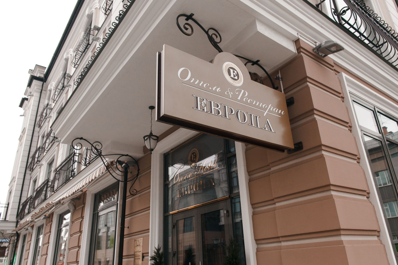"Europe" - the perfect choice for a holiday in the center of Kazan! Hotel and restaurant complex "Europe" is located in the center of Kazan, at the intersection of two pedestrian streets, "in the ring", as citizens of our metropolis called this place. Our advantages: - Ideal location - Architecture in the classical style - Walking distance to all the historical sights - The proximity of the subway station and bus stops - Spacious rooms equipped with free high speed Internet and individual air conditioning - Free wi-fipo throughout the compleA restaurant: • Schedule from 11-00 to 24-00 • Daily entertainment program • 100 seats • VIP-tepan hall for 15 seats • Banquet hall for 40 people with the ability to broadcast video on the big screen • Italian, Texas, Japanese, Chinese cuisine. A special feature of the hall is a demonstration kitchen.
