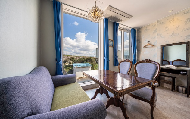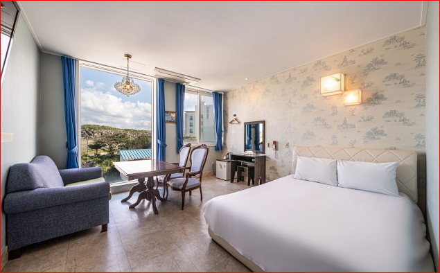 This hotel located along coast road and offeres nice ocean view from hotel. Approx. 5-minute drive from Jeju International Airport. Tourist attractinos such as Dodubong(adventive cone),Yongduam-rock, Iho Beach, Halla Arboretum etc. are equipped at guestroom. Air conditioner, TV, refrigerator, telephone, electric kettle, hair dryer etc. are equippet at guestroom. BBQ area, coffee shop as hotel facilities.