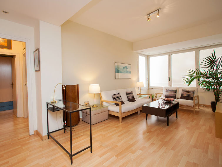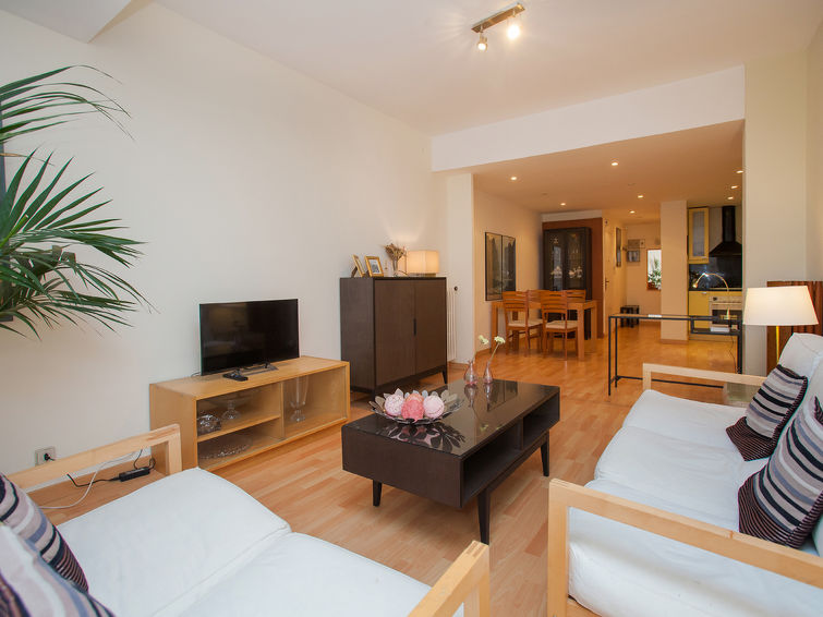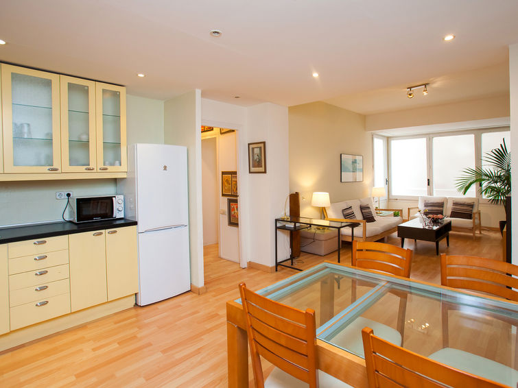 Eixample Dret: Apartment block "Eixample Dret Corsega Roger Lluria". In the centre, 4 km from the sea, 4 km from the beach. In the house: lift, central heating system. Public car park at 180 m, extra. Underground station "L3/L5 - Diagonal" 450 m, sandy beach "Barceloneta" 4 km. Nearby attractions: Sagrada Família 1.3 km, Plaça Catalunya 1.9 km, La Pedrera 550 m, Parc Güell 2.3 km, Passeig de Gràcia 750 m. Groups of teenagers on request only. Neighbourhood highly sensitive to noise. Quietness and good behaviour expected. Shops, bars, restaurants, chemist nearby. The apartment building is situated only 100 m from the famous Paseo de Gracia, where the most important modernist works are situated in the city. GROUPS OF YOUNG PEOPLE NOT PERMITTED. House only available, specifically, for families and responsible adults over 25 years old.4-room apartment 80 m2 on 2nd floor. Practical and comfortable furnishings: living/dining room 35 m2 with digital TV and flat screen. 1 room with 2 beds. 2 rooms, each room with 1 bed (80 cm). Open kitchen (4 hot plates, oven, microwave, freezer). Hip bath/WC, sep. WC. Facilities: washing machine, iron. Internet (WiFi, free). Suitable for families. Extra bed for a child under 12 years. HUTB003529