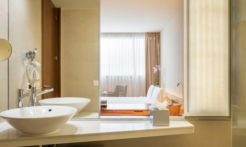 The hotel comprises a total of 262 rooms, adapted to suit all the needs of its guests. The 15th SB Club Lounge, located on the 15th floor, is an exclusive hospitality lounge for guests staying in the executive rooms and suites or the Whirlpool suites. It offers a range of dedicated services, including a concierge, an Internet corner and free drinks and snacks, as well as national and international newspapers and magazines. The Skylights Cocktail Bar, an elegant outdoor terrace, offers a relaxing space for coffee breaks and cocktails. Guests can also make use of The Ballroom America, which enjoys 6-metre-high ceilings, as well as 5 additional meeting rooms, all of which offer natural light and can be found on the first floor. Further facilities at this air-conditioned establishment include a lobby with 24-hour reception and check-out service, a hotel safe, a cloakroom, lift access, a café and a restaurant. WLAN Internet access and both room and laundry services are provided. There is ample parking for those arriving by car, some to be found in the garage. The lobby is very large and modern decorated. The lobby bar is full of light and life, with an aesthetic that will delight you. Ideal to relax, unwind and enjoy either a coffee or any article in the Food Boutique.