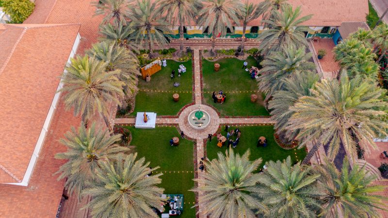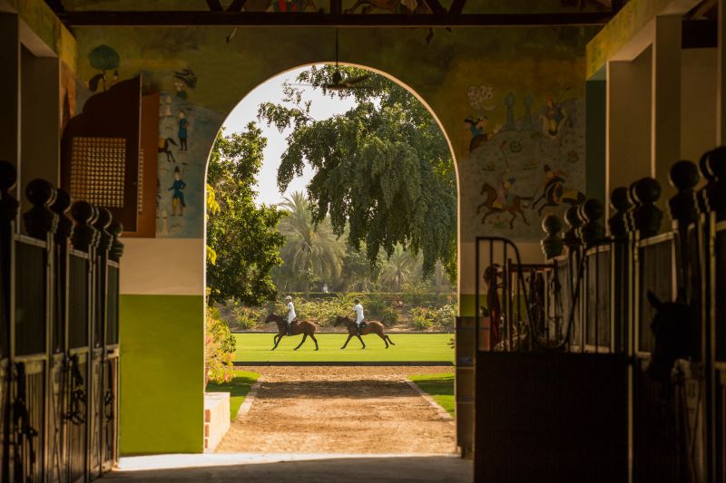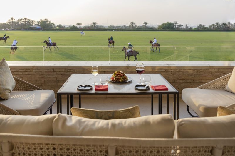 The resort is a lush enclave set in polo fields just outside the Dubai city centre, only a 15-minute taxi ride from Dubai International Airport (some 30 km).