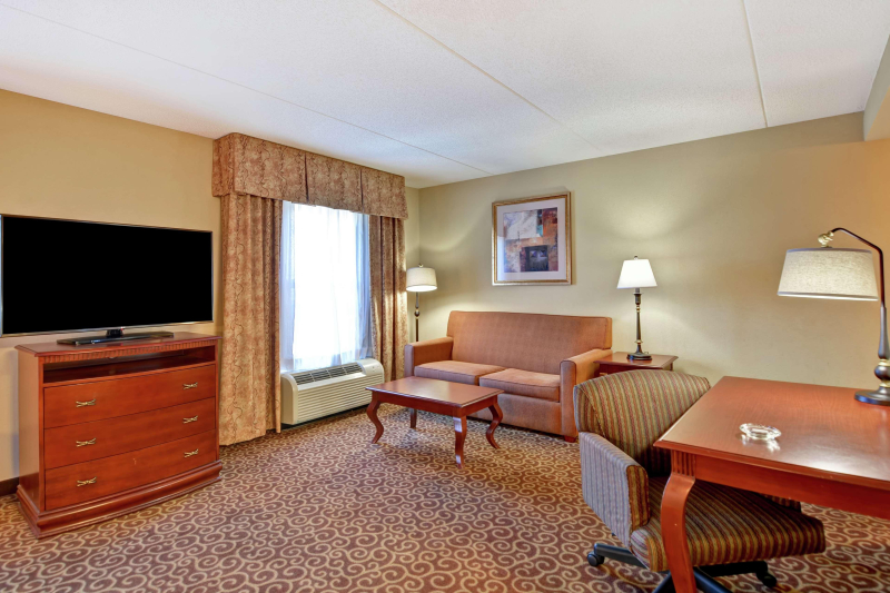 The Hampton Inn & Suites Fredericksburg hotel is located in Celebrate Virginia, conveniently located off of I-95 and Route 3, just minutes from Historic Downtown Fredericksburg, VA. Nearby shopping includes Central Park Shopping Center, outlet malls and Historic Downtown merchants and antique shops. You can find everything you are looking for here at the Hampton Inn & Suites Fredericksburg hotel: history, antiques, shopping, dining, theaters, golfing and much more. You can travel north to visit Washington, DC (45 miles) or the Potomac Mills Shopping Outlets, travel South 30 miles to King's Dominion Amusement Park.